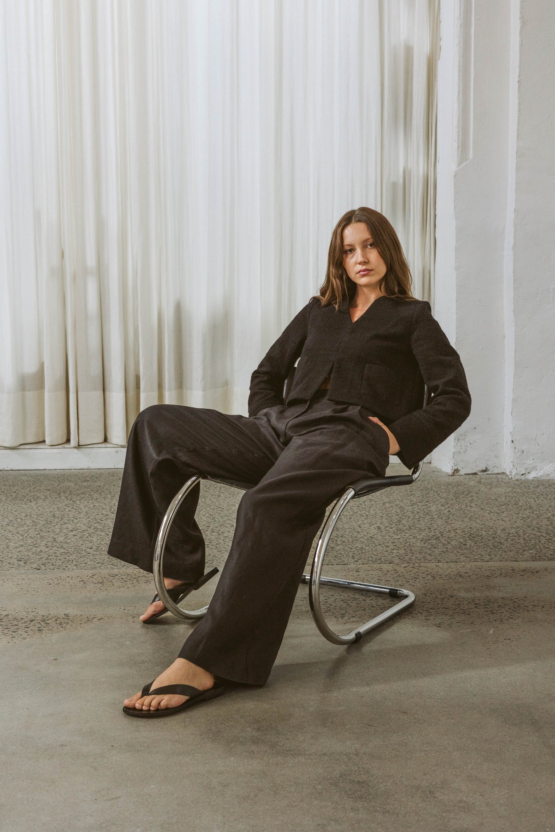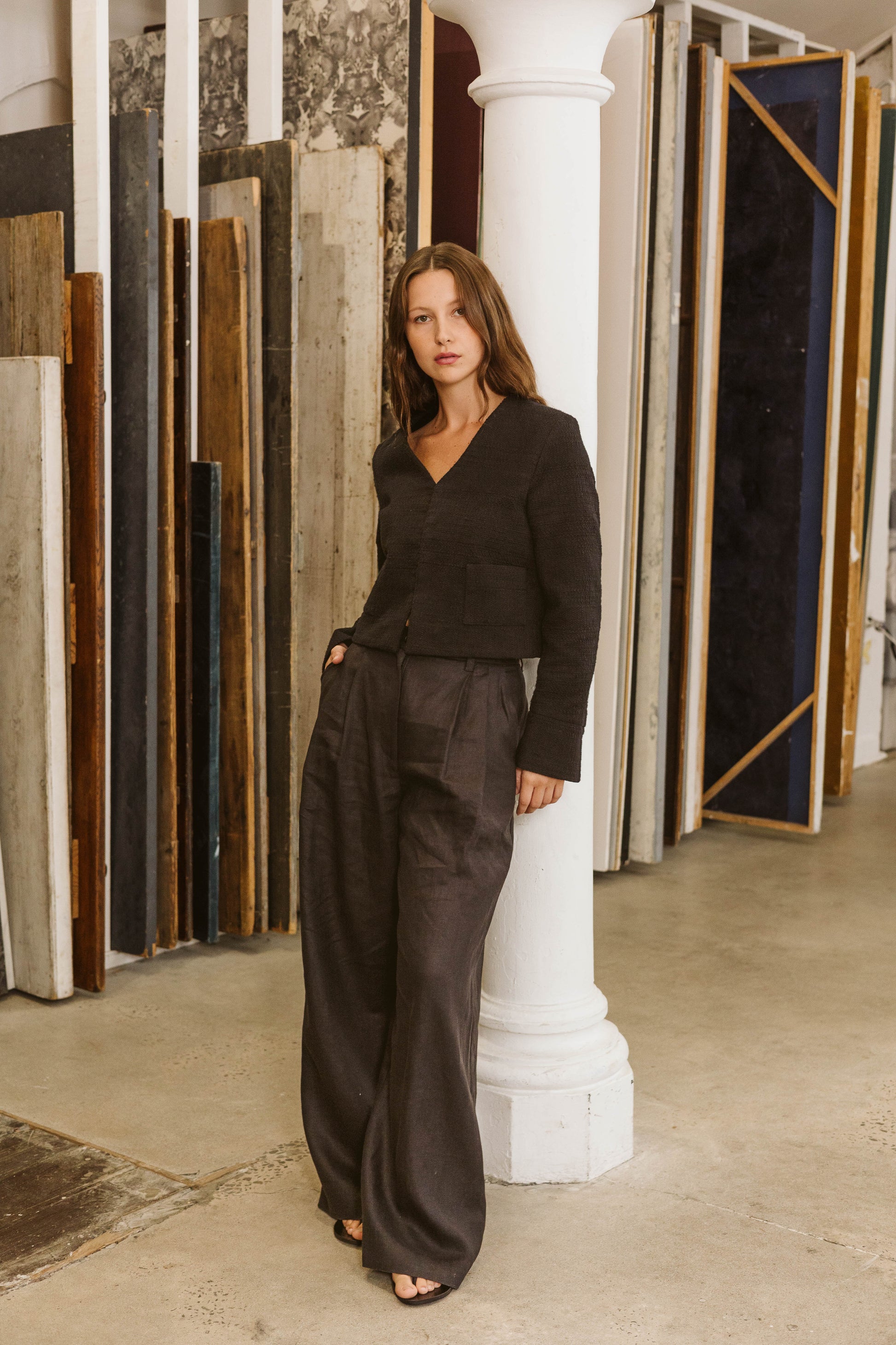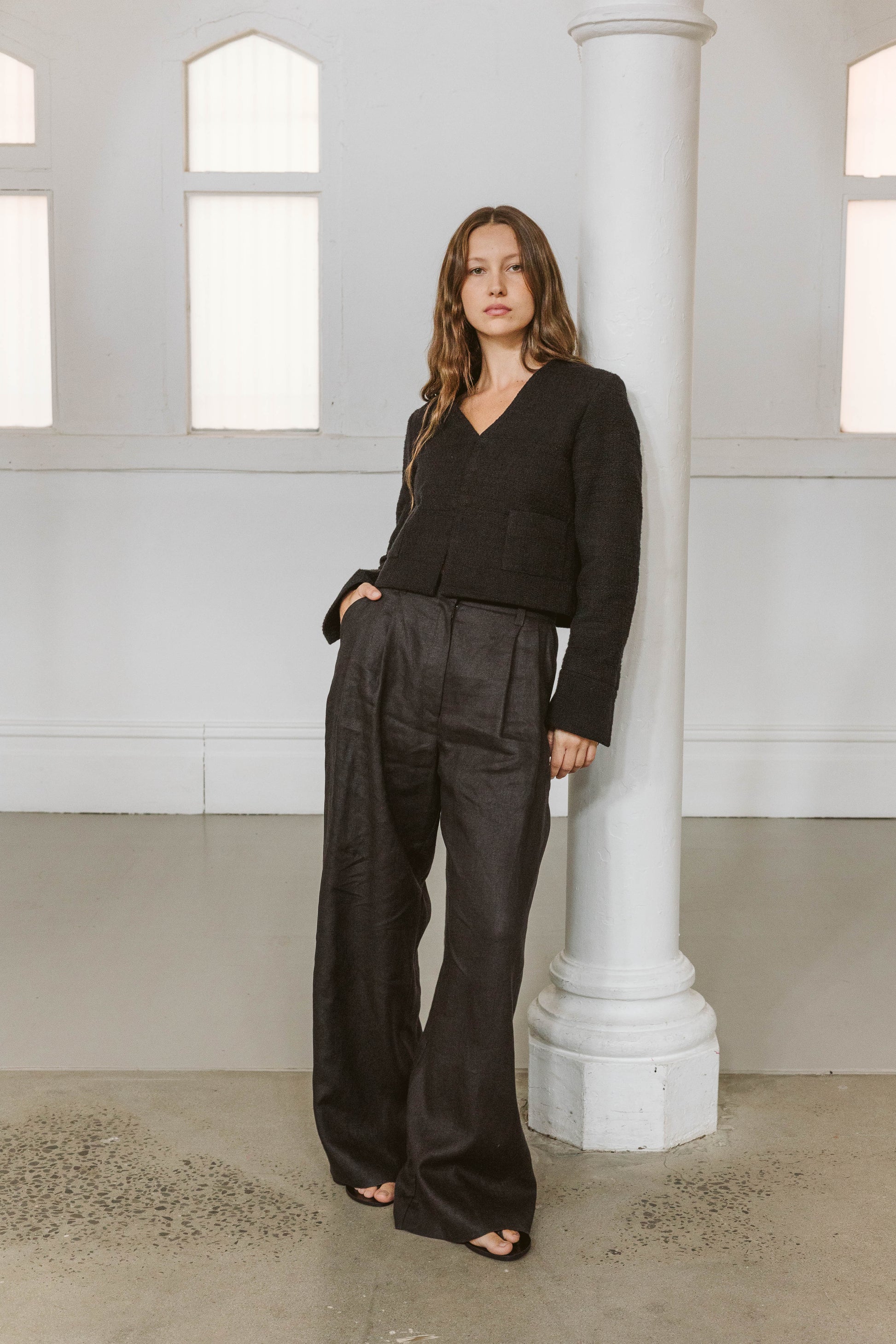 The Cotton Tweed Jacket is crafted in a luxurious woven tweed cotton fabrication, with three fabric covered hook-and-clasps down centre front. A wearable, layering piece that can be styled from day to night.